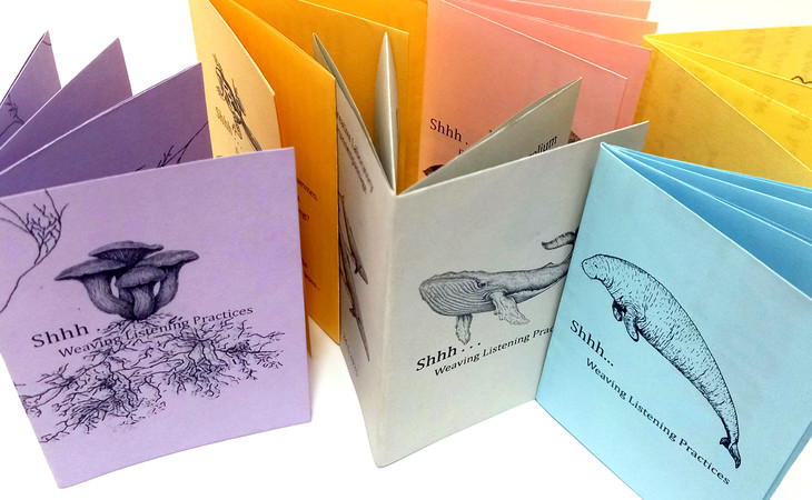 Zwischen November 2024 und Mai 2025 kam in der Brunnenpassage eine Gruppe von Künstler*innen, Aktivist*innen und Zuhörenden zusammen, um Zuhören als körper-basierte und kollektive Praxis zu erforschen – durch Bewegung, Klang, spekulatives Erzählen, Stille, Erinnerung und Widerstand. Von ko-kreativen Shhh... Workshops bis zur offenen Praxis beim StraßenKunstFest 2025 entstanden gemeinsame Rituale und Methoden – die Myzel-Bewegungsmeditation, Soundscapes, spekulative Geschichten, Fanzines als Anleitung und Dokumentation zugleich. Dieser verflochtene Prozess wird nun in der Vitrina erfahrbar und lädt ein zum Verweilen, Eintauchen und vertieften Zuhören.